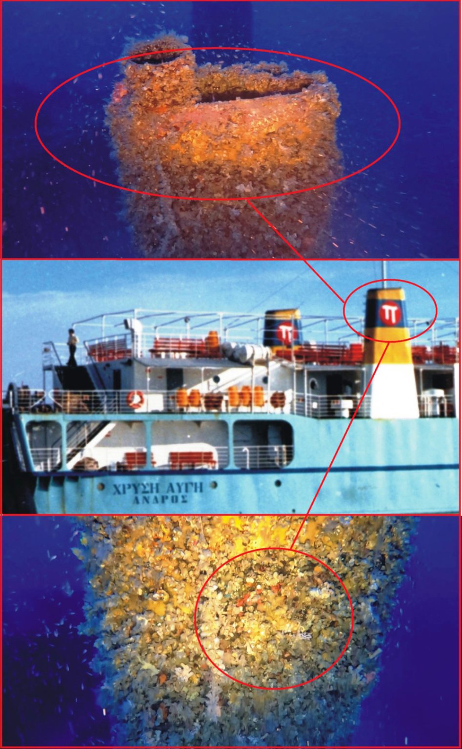 τμήμα της υπερκατασκευής ενώ όλο το υπόλοιπο πλοίο παραμένει ακέραιο στο βυθό».